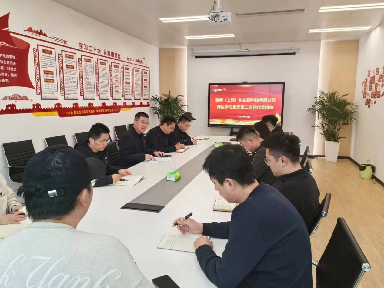 近日,魯商(上海)供應鏈科技有限公司黨支部召開專題會議傳達學習集團第二次黨代會精神,支部全體黨員采用線上線下相結合的方式參會。