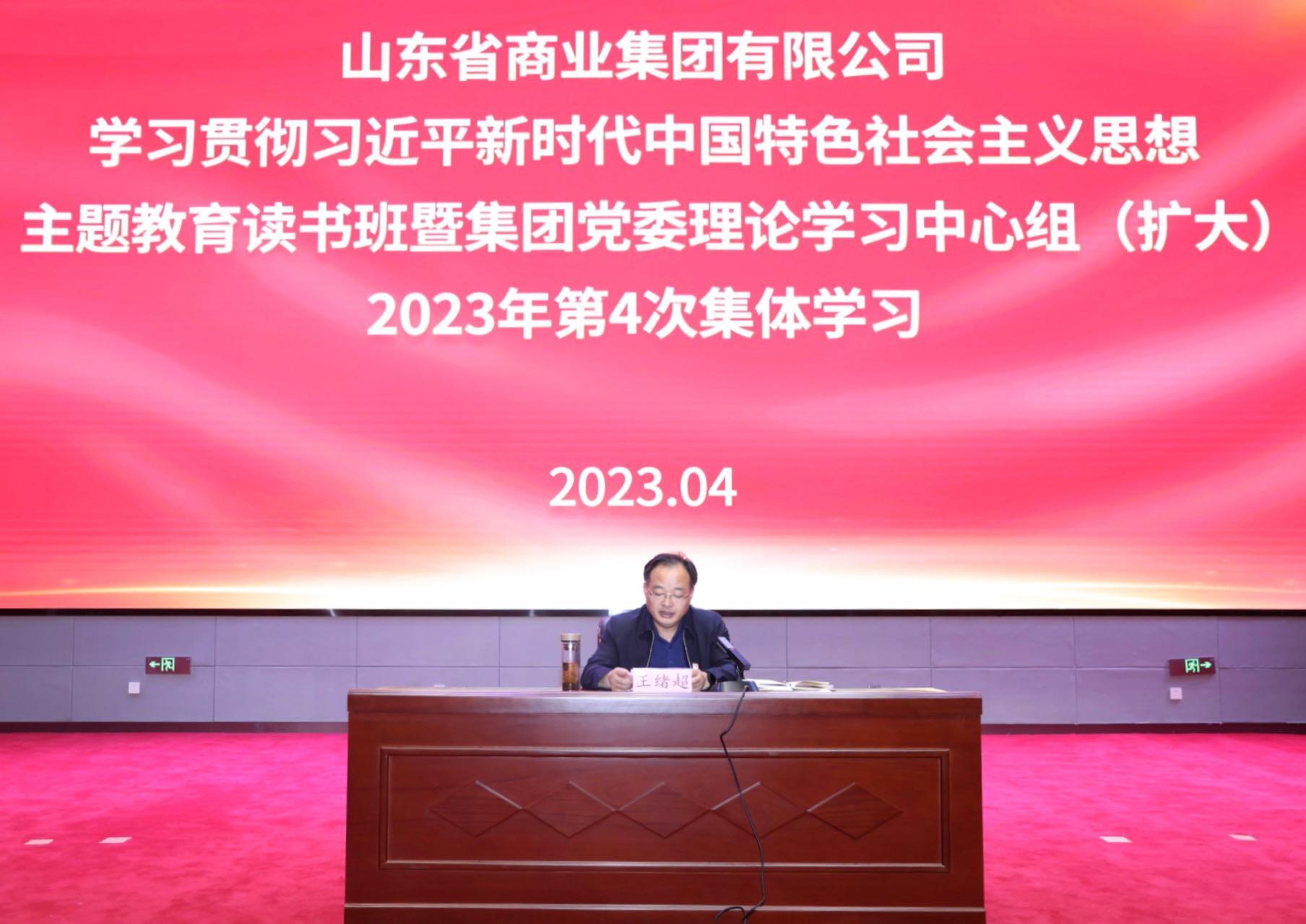 4月21日,魯商集團舉行學習貫徹習近平新時代中國特色社會主義思想主題教育讀書班交流研討暨集團黨委理論學習中心組(擴大)2023年第4次集體學習,圍繞“把握好習近平新時代中國特色社會主義思想的世界觀和方法論,堅持好、運用好貫穿其中的立場觀點方法”主題展開專題研討。集團黨委書記、董事長王緒超主持并領學有關內容。部分集團黨委理論學習中心組成員及直屬單位相關負責人作重點發言。