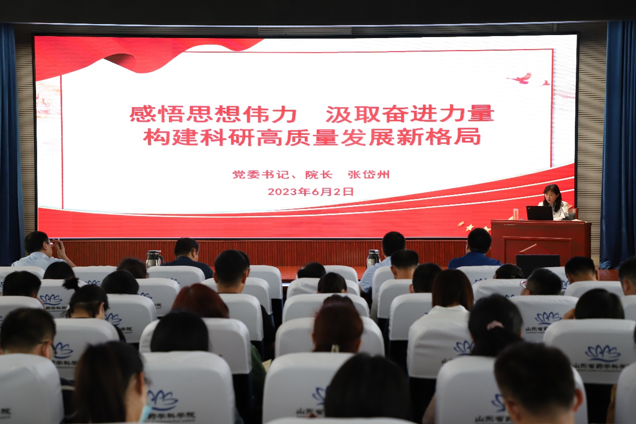 6月2日,省藥科院黨委書記、院長張岱州以《感悟思想偉力 汲取奮進力量 構建高質量發展新格局》為題,為廣大黨員干部講授主題教育專題黨課。