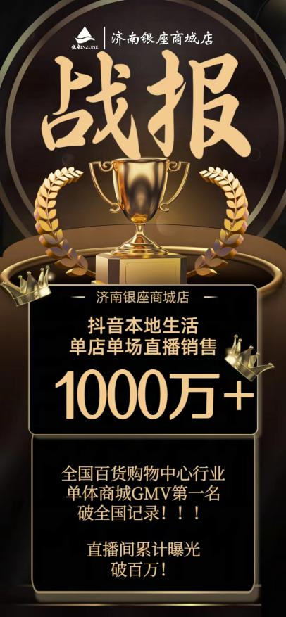 近日,銀座濟(jì)南商城店組織開(kāi)展“27周年慶”抖音本地生活專場(chǎng)團(tuán)券大型直播活動(dòng),直播專場(chǎng)曝光量破百萬(wàn),銷售額超1000萬(wàn)元,破抖音本地生活百貨購(gòu)物中心行業(yè)單店單場(chǎng)直播GMV全國(guó)紀(jì)錄。