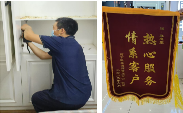 面對感謝,他靦腆回應“舉手之勞,不算啥。”幾日后,屈女士專程送來“熱心服務 情系客戶”的錦旗,連聲稱贊:“張師傅不僅洗碗機裝得專業,幫我改的衣柜也特別順手,這樣的貼心服務必須點贊!”