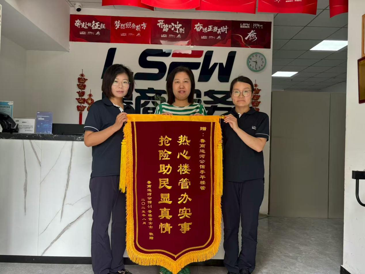 8月27日,濟寧運河公館項目物業服務中心收到業主專程送來的一面錦旗,紅彤彤的絨面上,“熱心樓管辦實事,搶險助民顯真情”的金黃大字格外醒目,字里行間滿載著對物業人專業應對與暖心服務的誠摯謝意。