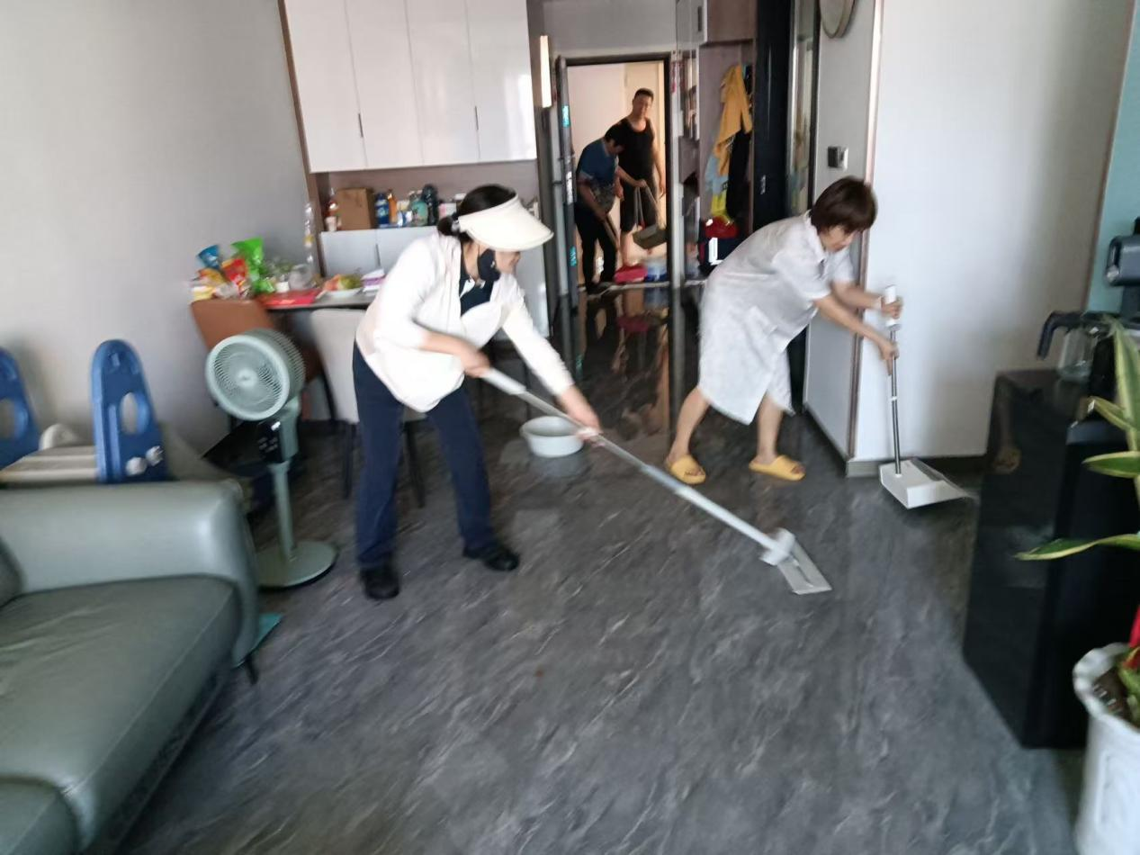事件源于一場突如其來的緊急情況。當日,客服管家李平接到住戶的緊急報修,反映鄰居家中嚴重漏水,水流正不斷從門縫溢出。李平第一時間多途徑聯系業主,同時火速協調工程、保潔等人員攜帶工具奔赴現場。到達后,工程人員發現一戶水表飛轉,迅速關閉該戶總閥控制水源;保潔團隊則立即對樓道積水進行清理阻斷,避免影響擴大。